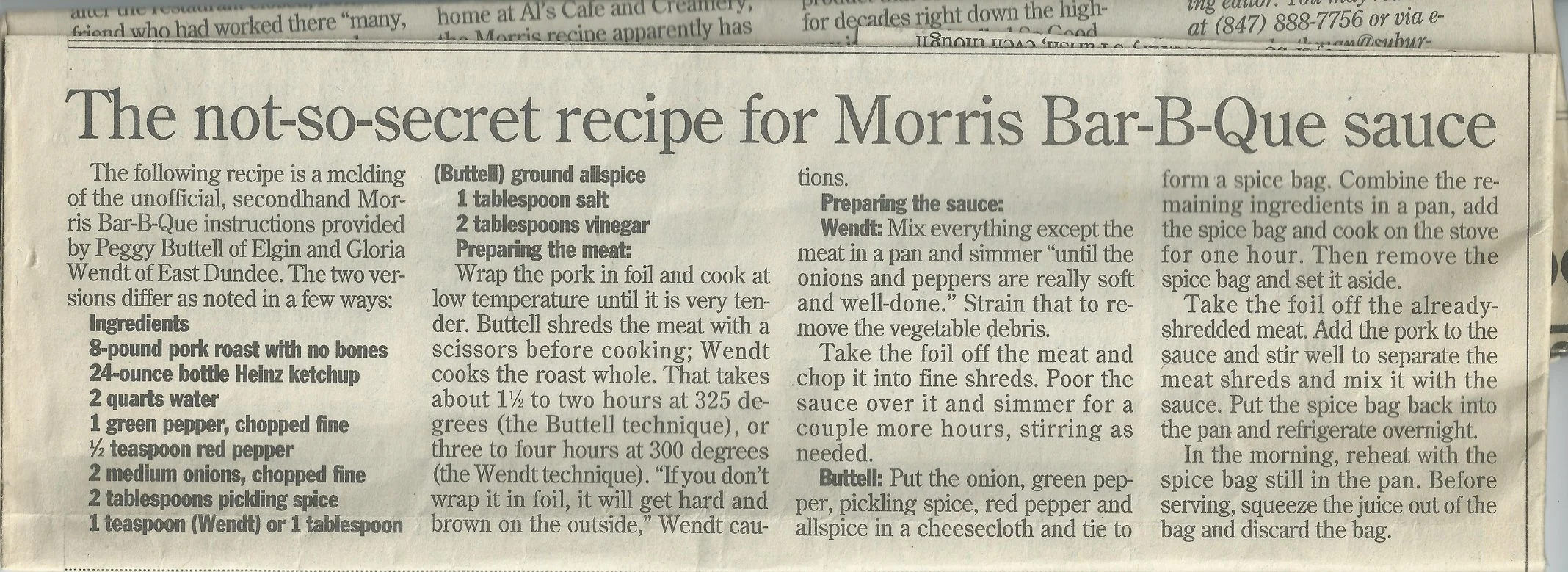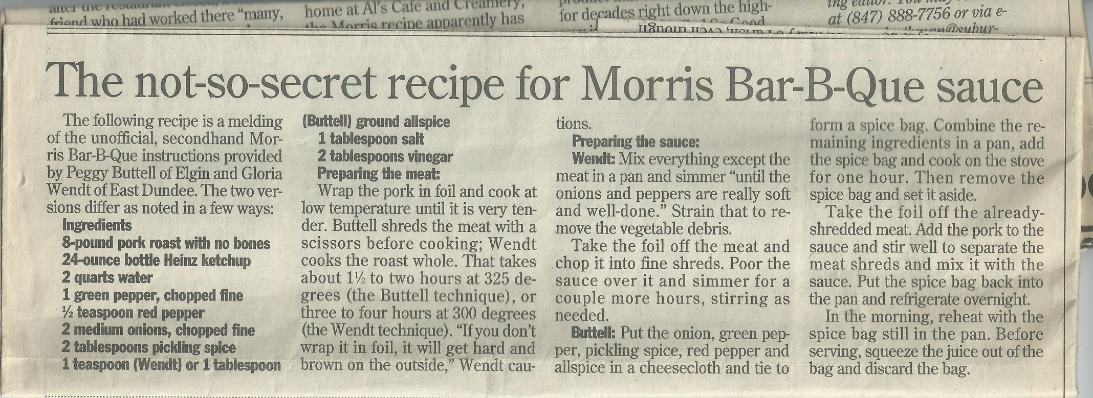 The original Morris BBQ in Elgin, IL closed its doors roughly 35 years ago. It was a beloved local staple famous for its unique port sandwiches topped with coleslaw and iconic pig statues on the roof. The standard order for many was two pork sandwiches with extra slaw. Customers often recall the “pigs on the roof” and the distant Eastern style vinegary sauce that set it apart from other Midwestern BBQ at the time.